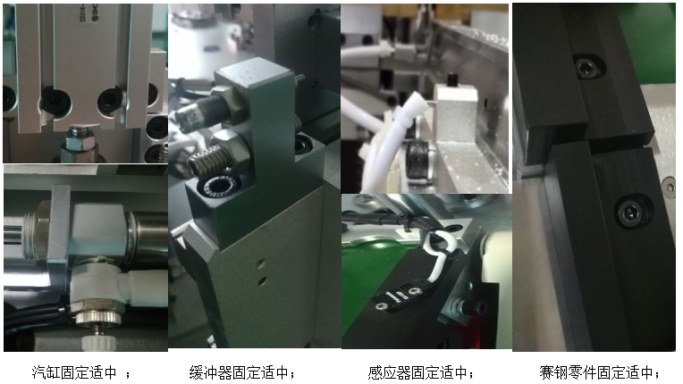 上图机构零件螺丝固定力度相对主体支撑弱一些,汽缸固定紧会压变形缸体;缓冲过紧会裂开;感应器过紧会损坏;赛钢过紧会损坏起坑;